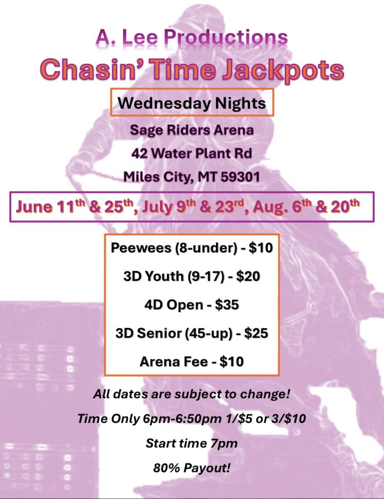 Who doesn’t love a simple jackpot!? We have decided to do some Wednesday night jackpots! Just racing for your money. This is an every two week deal! Mark these dates for some evening fun!