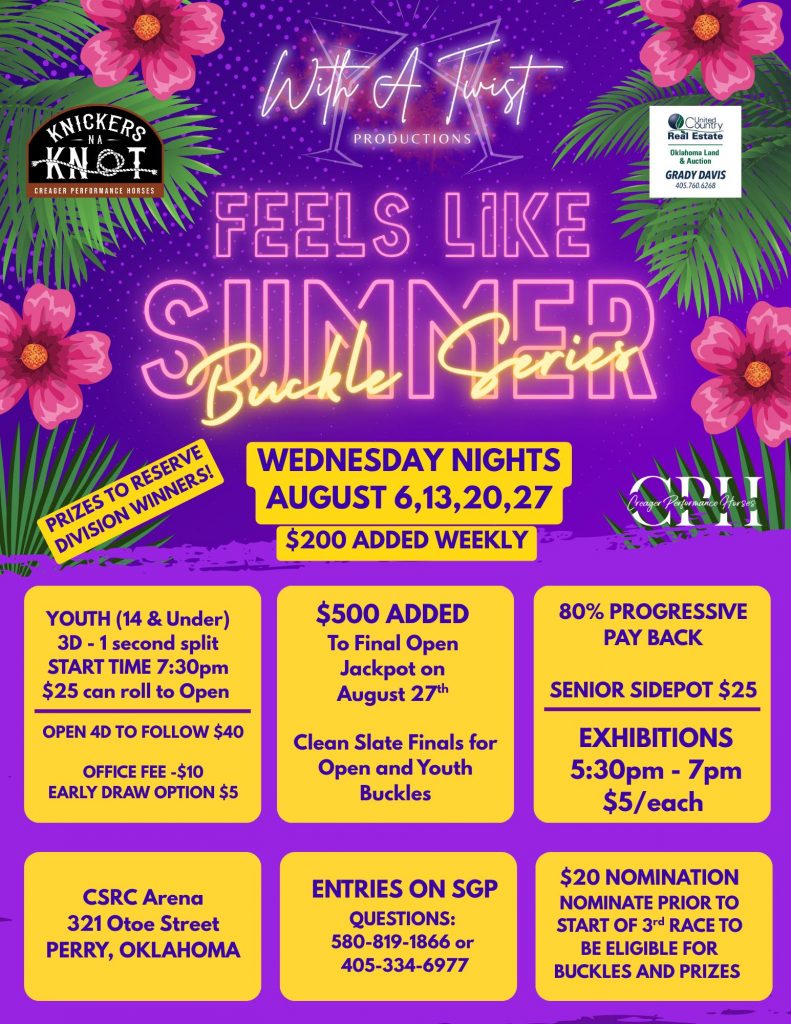 4 week Wednesday night Buckle Series in Perry, Oklahoma!