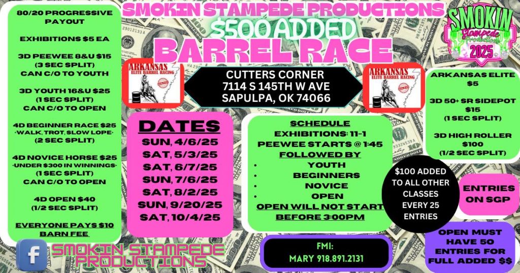 OK-Smokin Stampede Productions Barrel Race $500 Added