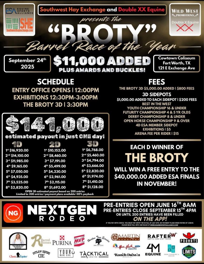 The BROTY Barrel Race is coming up September 24th at Cowtown Coliseum in Fort Worth, TX!