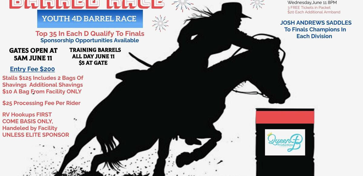 No golfcarts, segways, bikes, scooters, hoverboards, etc in ANY BARN HALLWAY or inside the arenas or warm up areas or IN THE ROAD WHERE VEHICLES TRAVEL! Any violations will result in disqualifications of the contestants. Safety is the primary concern and we are here to barrel race folks. Big money payouts and the love of the sport! Nothing more, nothing less. Don't make it necessary for staff to step in where parenting should be taking place. We look forward to a wonderful event full of fun!