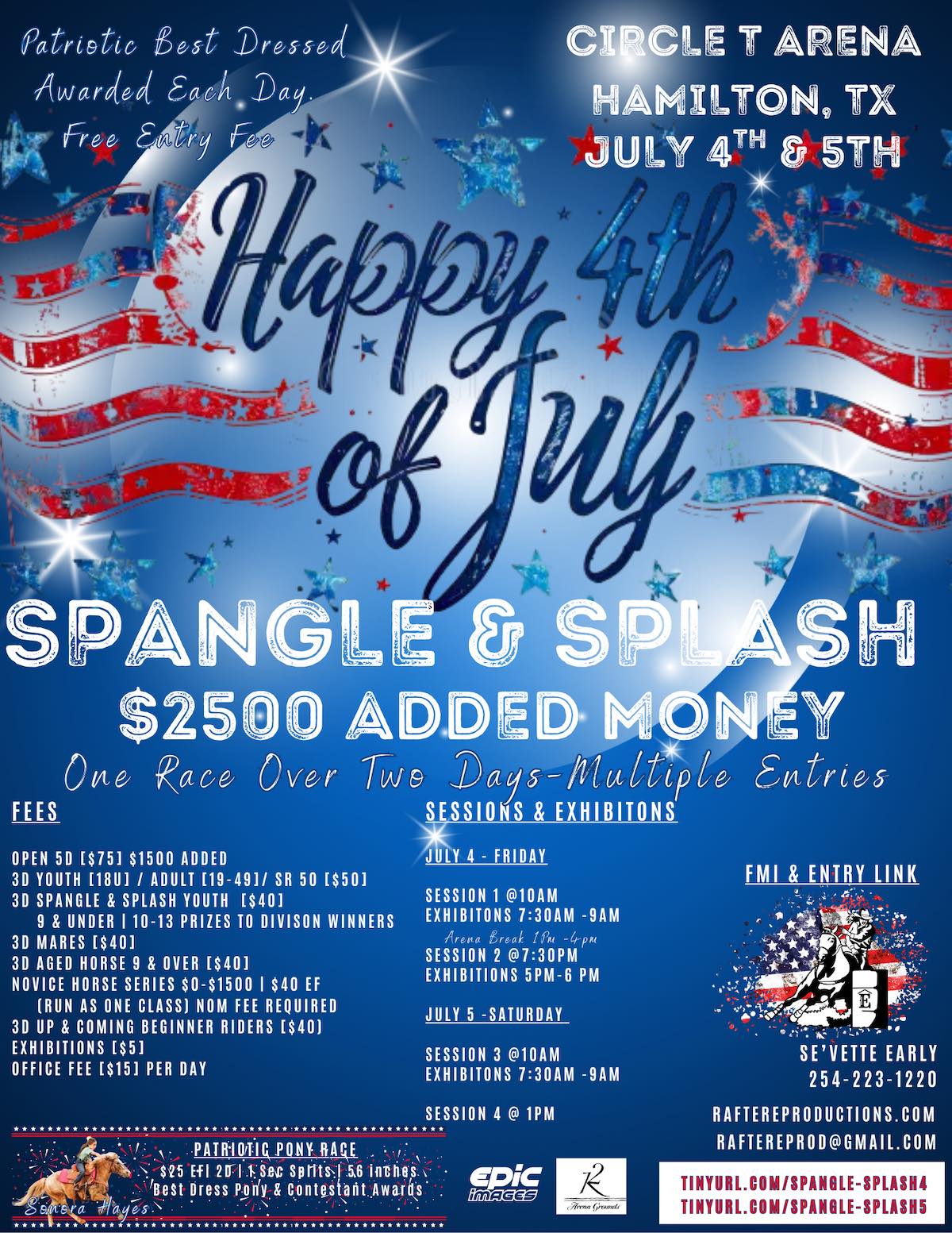 ![]() Saddle up and celebrate the 4th of July with us at Circle T Arena in Hamilton, TX for Spangle & Splash – a two-day race extravaganza with $2500 ADDED MONEY! JULY 4TH & 5THOne Race – Multiple Entries – Two Action-Packed DaysPatriotic Best Dressed awarded each day (Free to enter!)Patriotic Pony Race – 25ft sprints for […] |