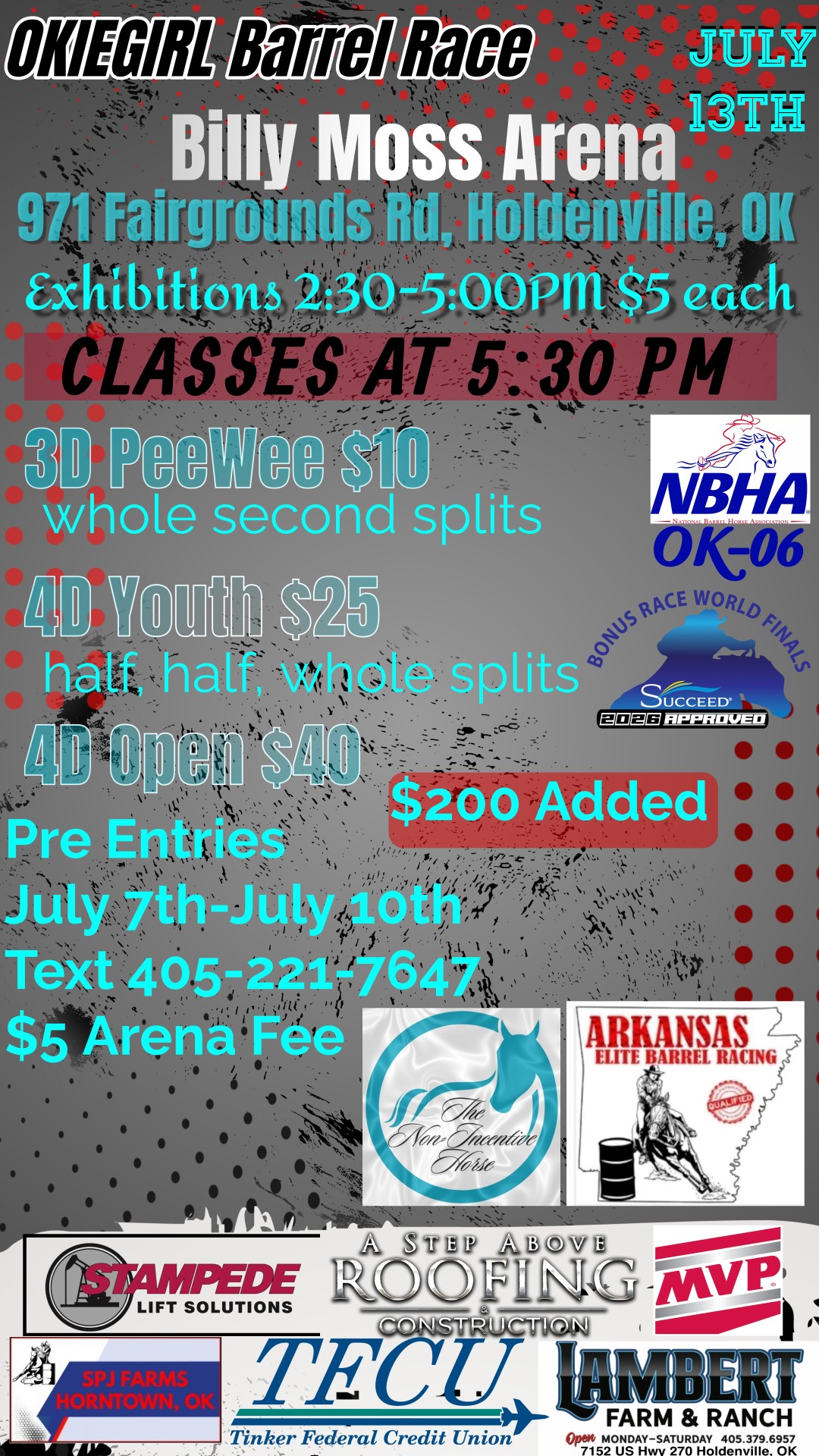![]() $250 added exhibitions at 5pm race begins at 7pm!! Looking forward to seeing you all!! Enter on Rodeo Results or Text me entries and any Exhibitions you are wanting. |