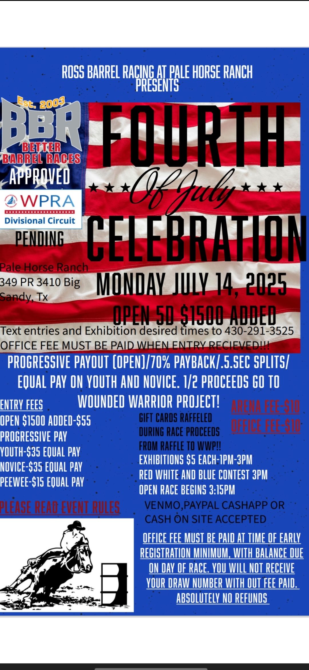 ![]() GFR JULY BOOM BOOM CELEBRATION--ALL DAYS BBR APPROVED....ENTRIES ARE OPEN ON THE RODEO RESULTS APP!