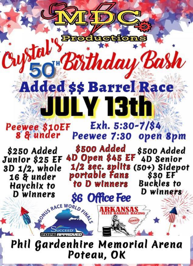 ![]() All you barrel racers better be getting it on your mind! Next Sunday, July 13th Poteau’s Phil Gardenhire Memorial Arena will be the place to be! Come to run or come to cheer the racers on, either way we hope to see y’all out there!