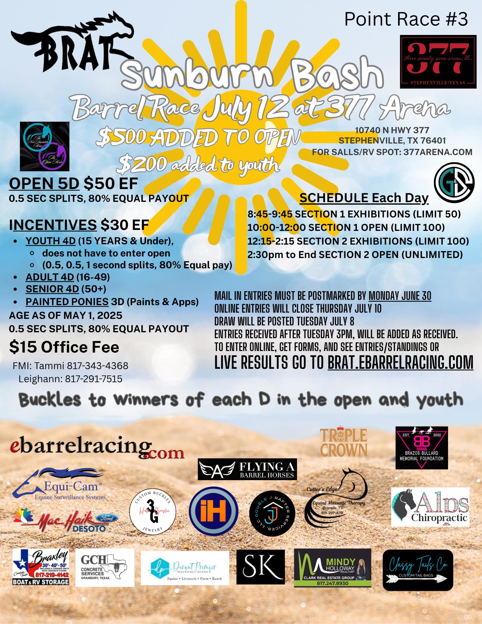 ![]() SWBRA Annual Casino Night August 1 - 3, 2025 Pre-Entry July 1 - Aug 3, 2025 Presented By Southwest Barrel Racing Association CrossHollow Events CenterCedar City, UtahAugust 1st - 3rd$10,000+ added Friday will be a 5D if over 100 runners. Saturday and Sunday are 5D All side pots are 3D. FYH will be a 2D […]