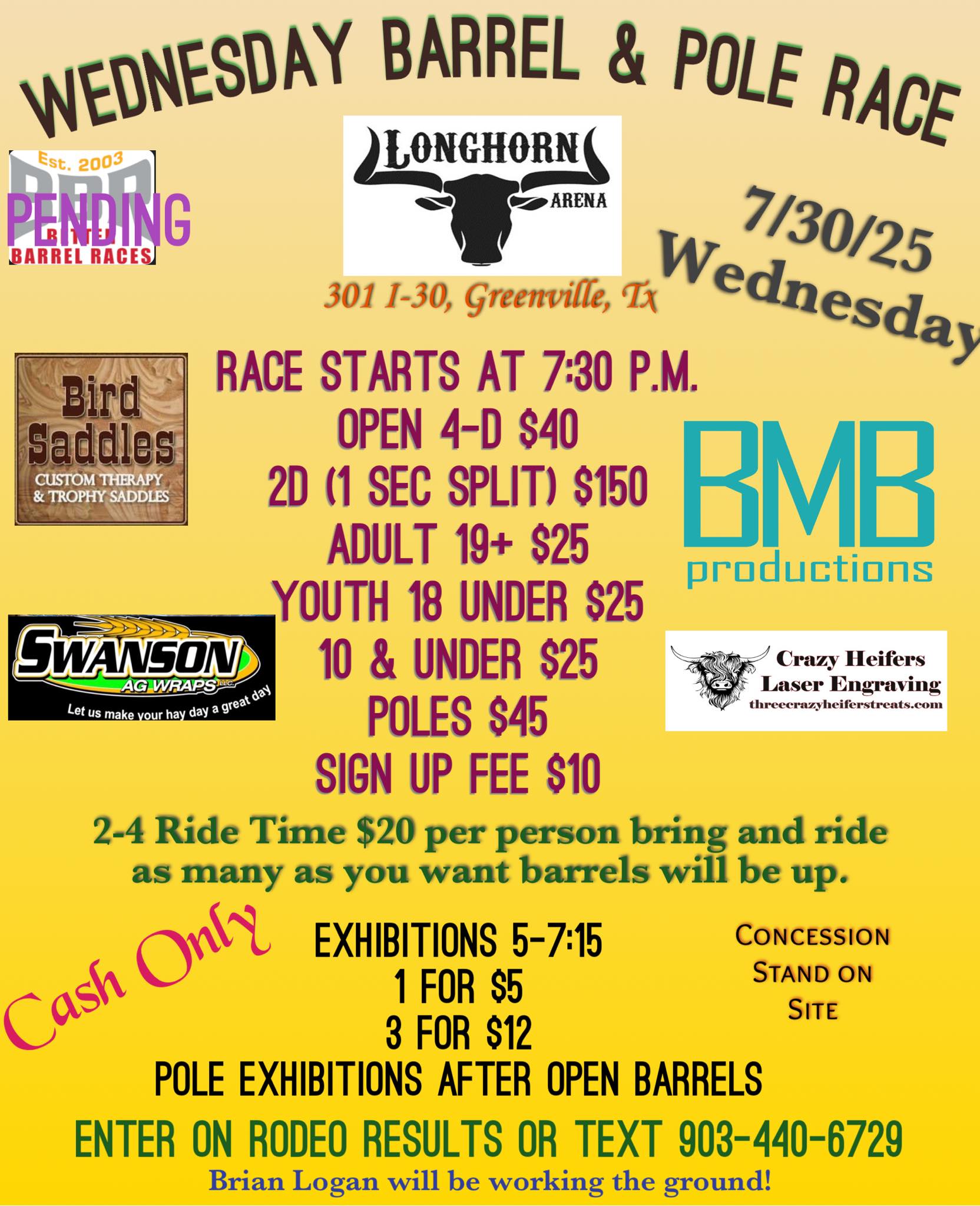 ![]() $250 added exhibitions at 5pm race begins at 7pm!! Looking forward to seeing you all!! Enter on Rodeo Results or Text me entries and any Exhibitions you are wanting. |