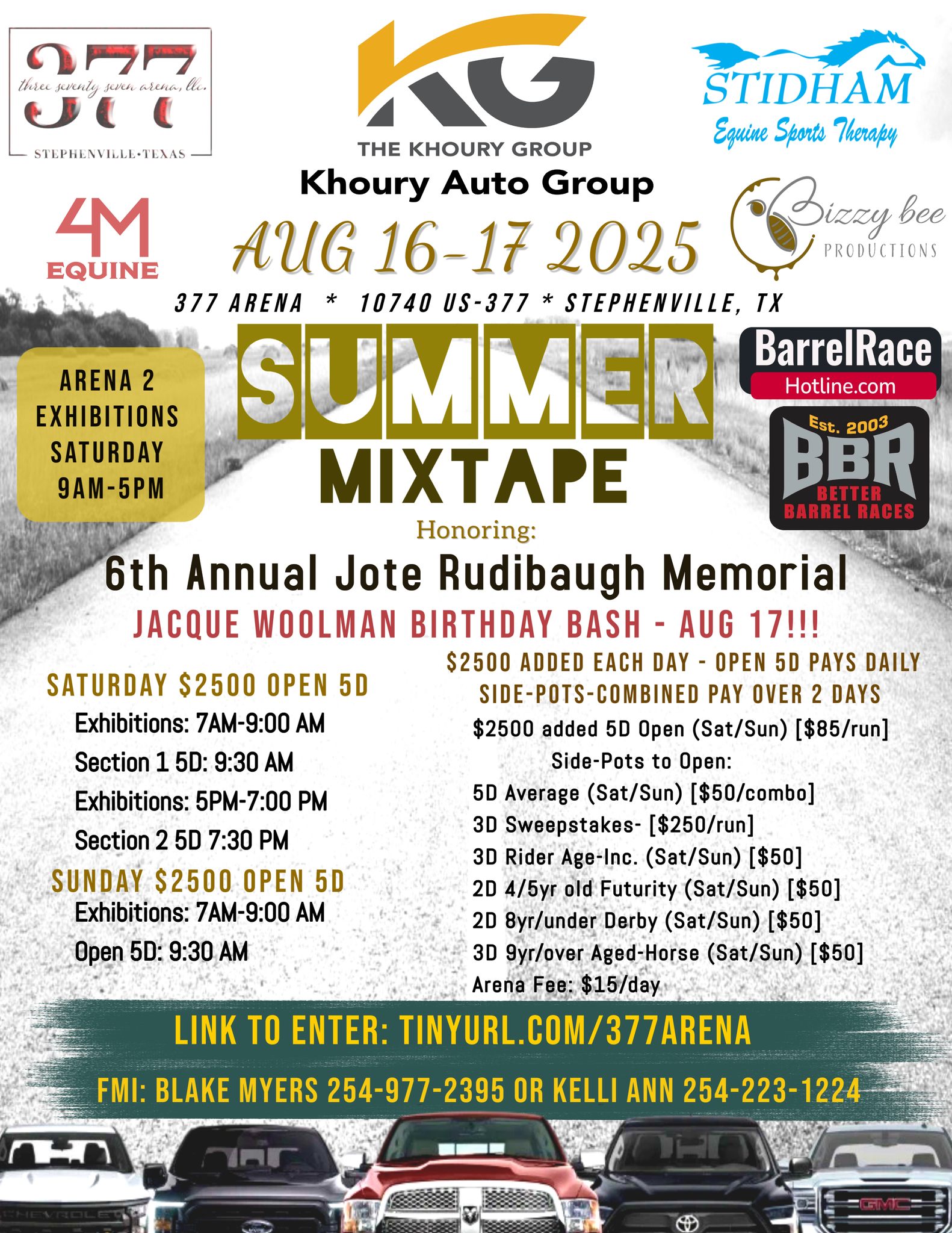 ![]() We love celebrating JOTE's Memory. $2500 EACH DAY. Aug 16-17 at 377Arena in Stephenville, TX. This race is BBR approved. Entries Are Open. Lots of Great Awards and MONEY!!